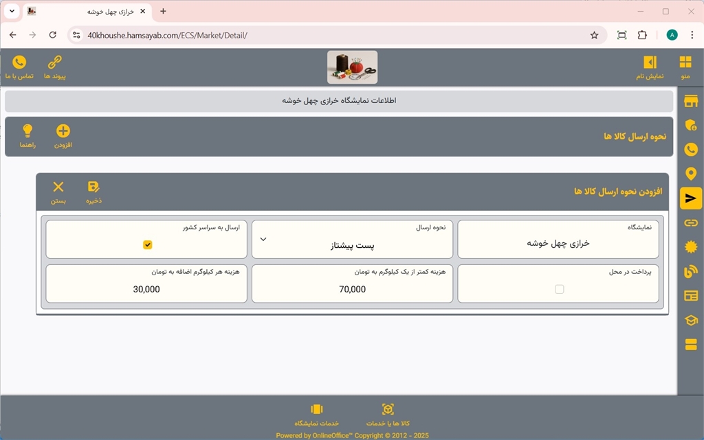 مدیریت نحوه ارسال کالاهای نمایشگاه در سایت همسایاب