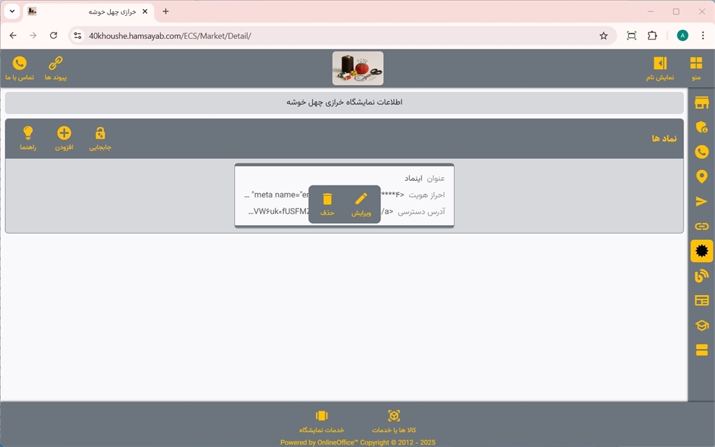 مدیریت نمادهای نمایشگاه در سایت همسایاب