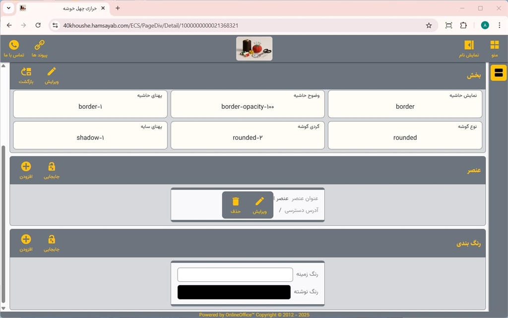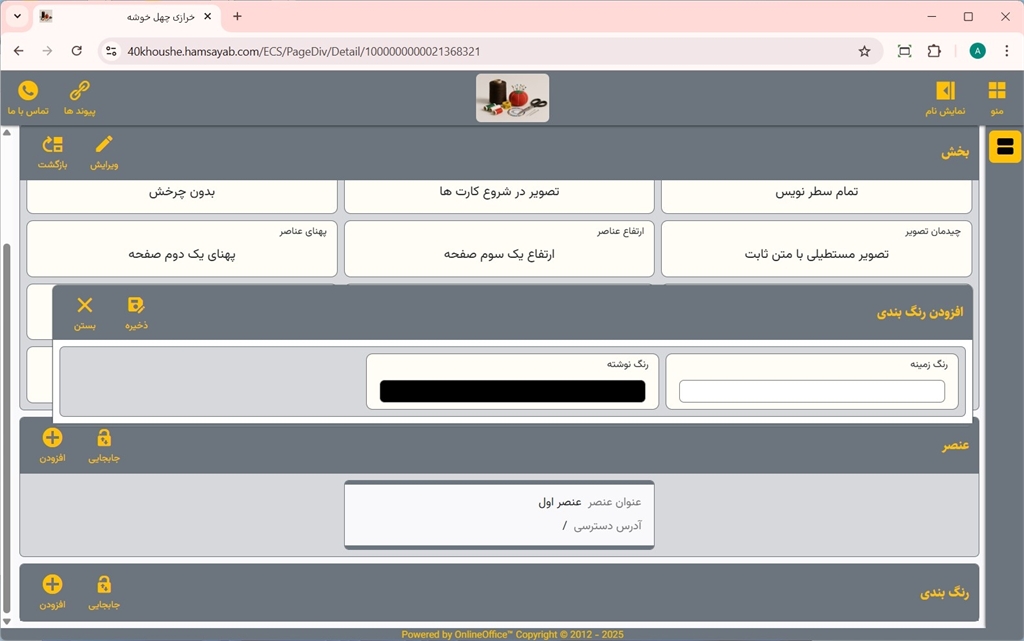 برای ویرایش یا حذف عنصر یا رنگ بندی هر بخش، از دکمه های مربوطه استفاده نمایید.