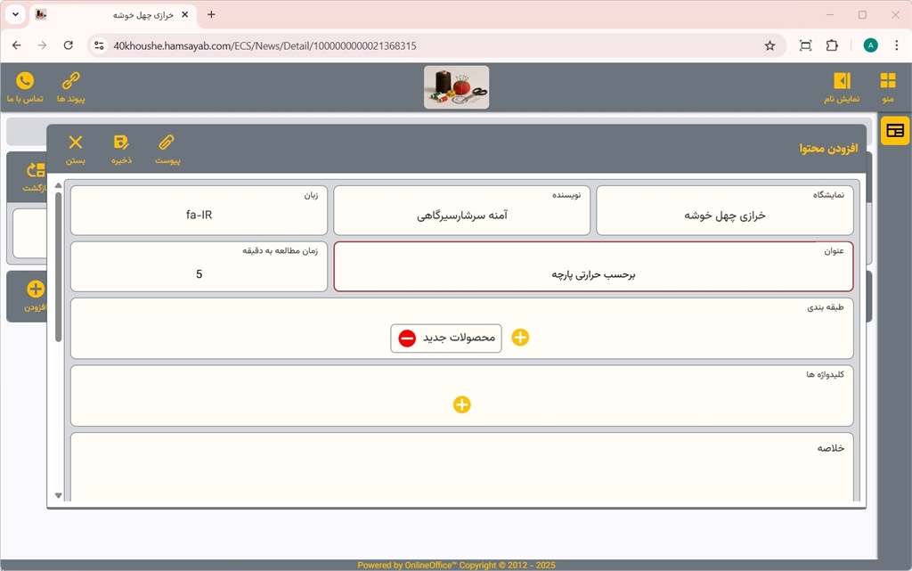مدیریت مطالب خبری نمایشگاه در سایت همسایاب