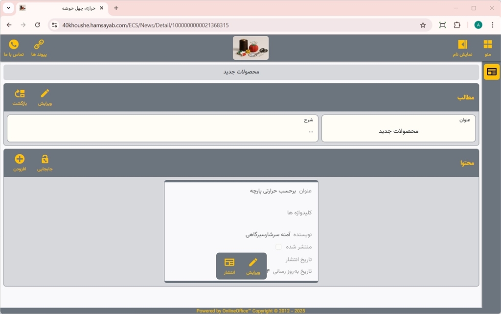 برای ویرایش، انتشار یا عدم انتشار محتوای مطالب خبری بر روی دکمههای مربوطه کلیک نمایید.