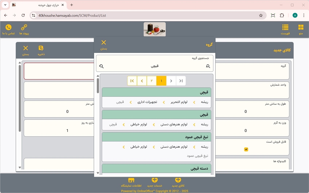 برای افزودن کالا بر روی دکمه کالای جدید کلیک نمایید.