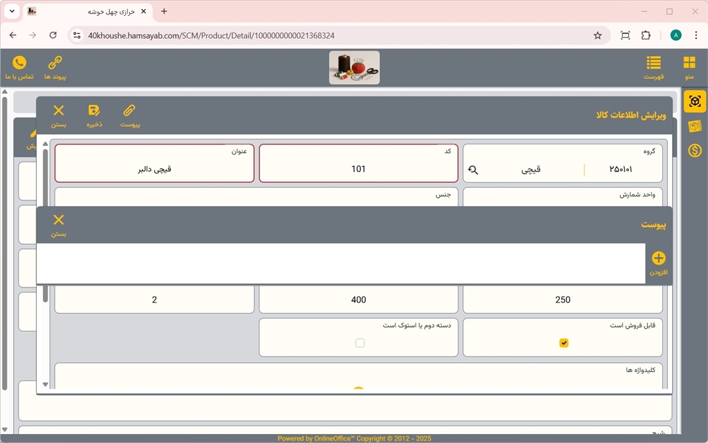برای افزودن تصویر به کالا بر روی دکمه پیوست کلیک نمایید.