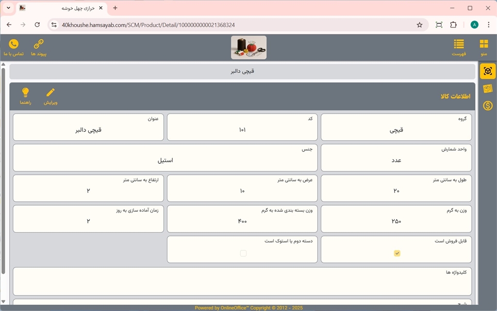 برای مشاهده کالاها یا افزودن کالا یا خدمات جدید بر روی دکمه فهرست کلیک نمایید.