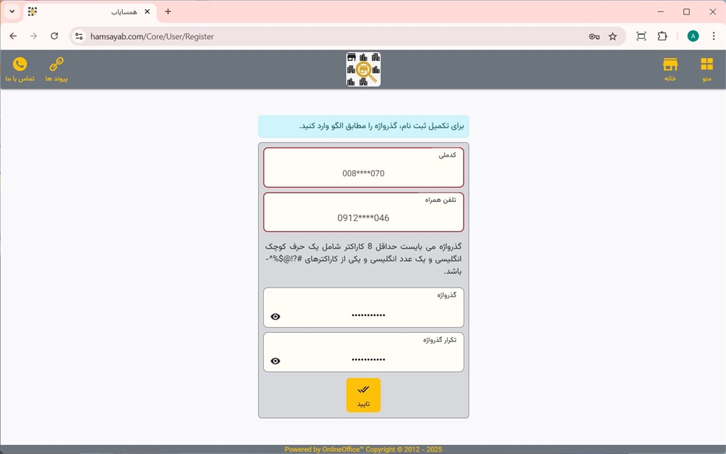 ثبت نام در سایت همسایاب